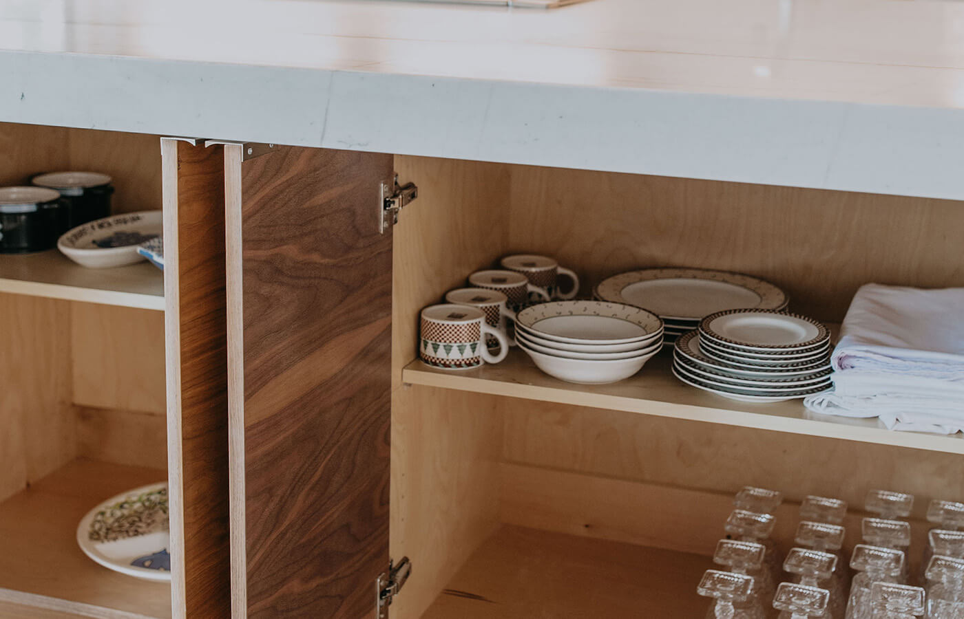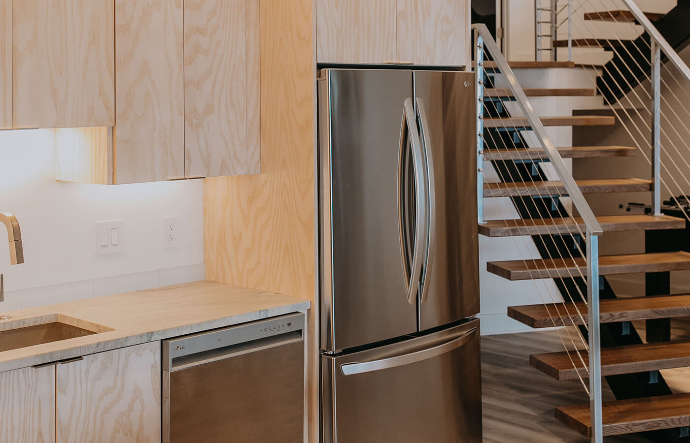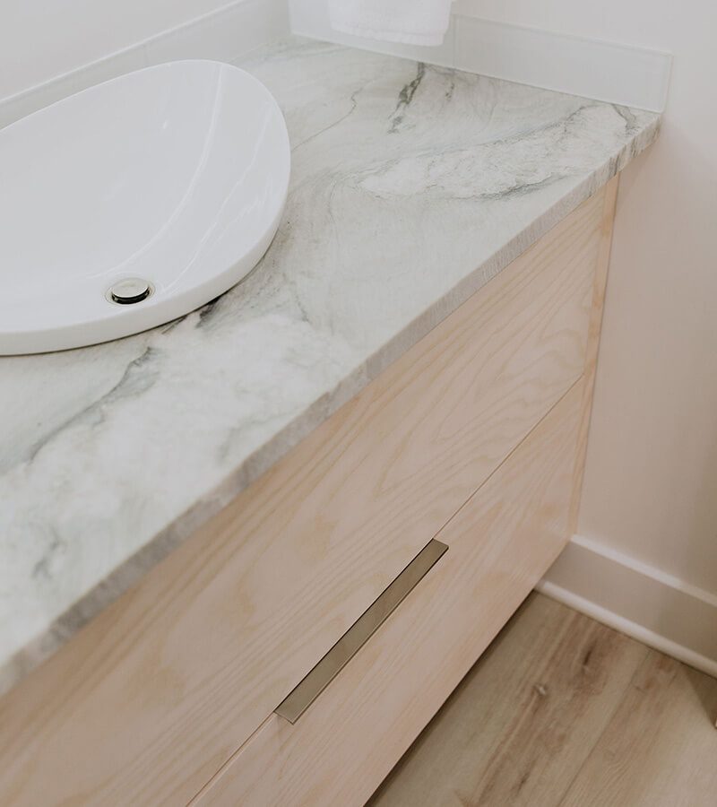 This cabinetry project focused on European full overlay designs, delivering a modern and streamlined look. The use of walnut and ash not only adds warmth and sophistication but also allows the wood’s natural beauty to shine through with minimal staining. Accent lighting plays a pivotal role in this design, illuminating the wood grains and creating a dramatic backdrop that draws the eye to the simple yet stunning cabinetry. The result is a harmonious blend of function and style, perfect for any contemporary space.
